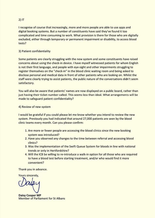 Daisy Cooper MP raises concerns over new blood test booking system