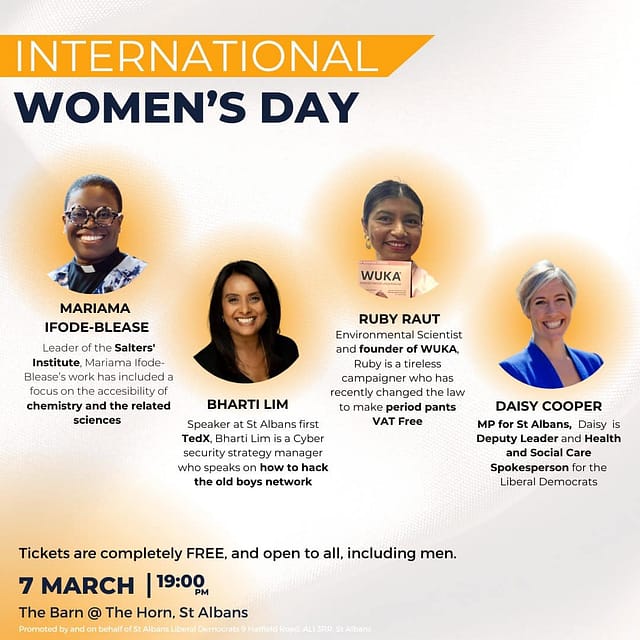 Our FREE event at The Barn @ The Horn St Albans on Thurs 7 March will feature three inspirational local residents