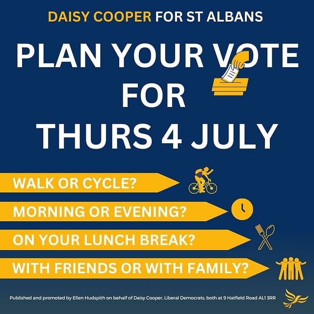Published and promoted by Ellen Hudspith on behalf of Daisy Cooper, Liberal Democrats, both at 9 Hatfield Road AL1 3RR